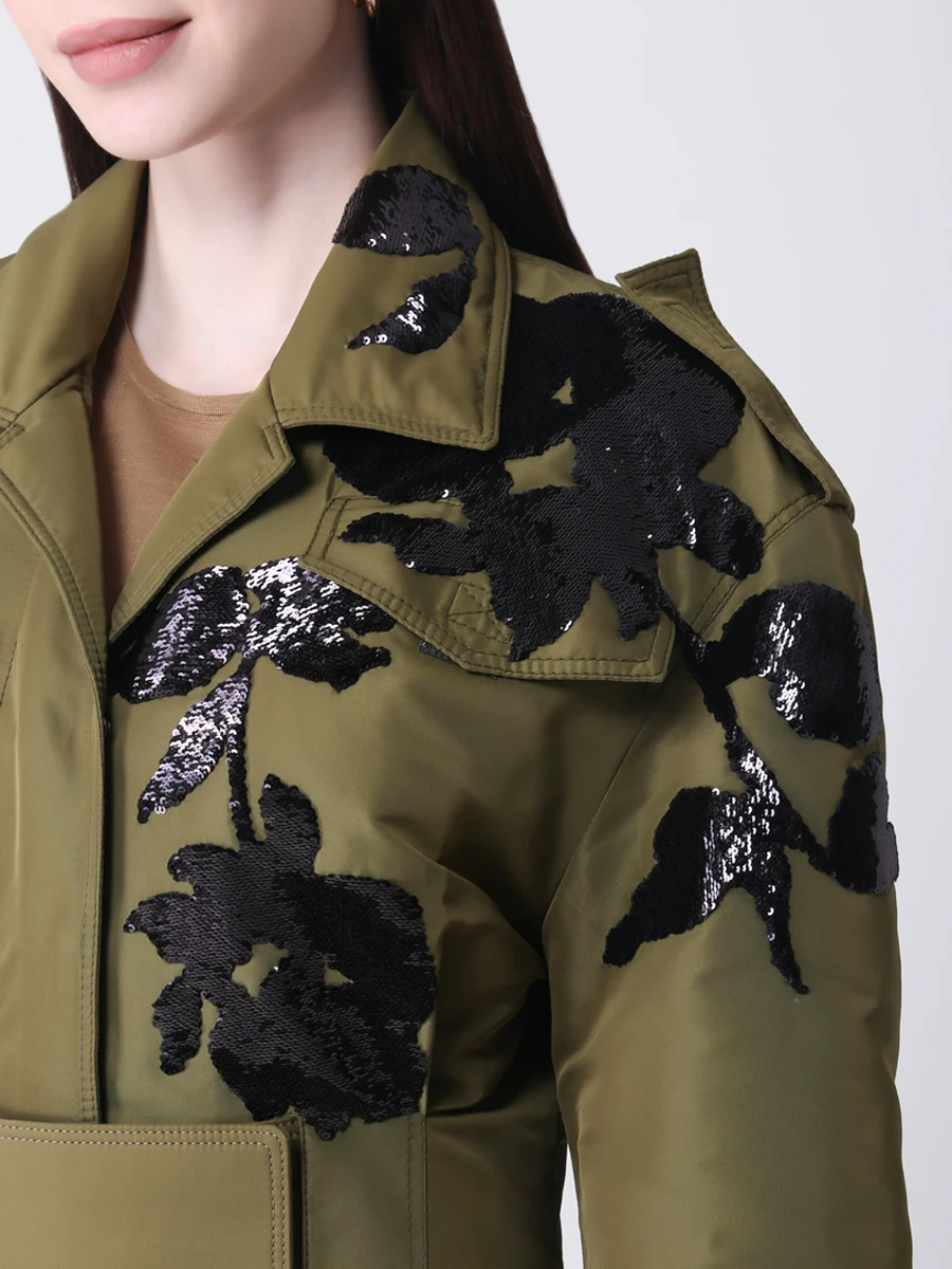 Характеристики товара: Пол: Женская | Цвет: Зеленый | Страна производства: ИТАЛИЯ | Состав: 100% полиэстер. Вспомогательный материал: 100% полиамид. Подклад: 67% хлопок, 33% полиамид. Детали: кожа